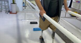 جريح بتر مزدوج يستأنف خطواته الأولى ضمن برنامج تأهيل حركي بعد تركيب الأطراف الصناعية